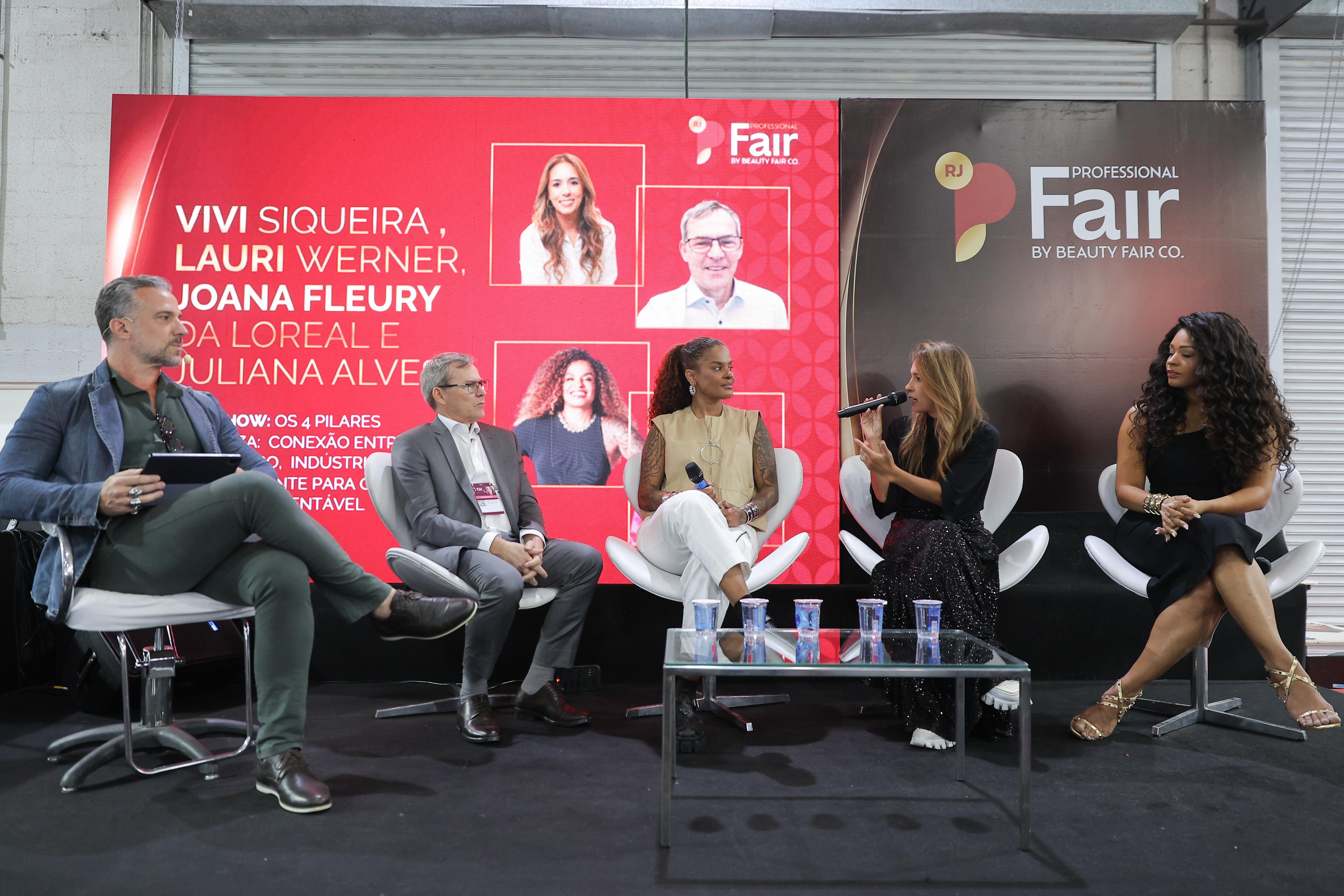 Rio de Janeiro, Outubro de 2025 — A Professional Fair Rio de Janeiro, organizada pela Beauty Fair — a maior plataforma de negócios e conteúdo de beleza das Américas —, promoveu nesta segunda-feira (20) o talk show “Os 4 pilares da beleza: conexão entre o cabeleireiro, indústria, salão e cliente para o sucesso sustentável”. O encontro reuniu nomes de destaque do mercado como Joana Fleury, Diretora da Divisão de Produtos Profissionais do Grupo L’Oréal; Vivi Siqueira, cabeleireira e embaixadora de L’Oréal Professionnel; Lauri Werner, sócio da rede Werner Coiffeur; além da atriz Juliana Alves.